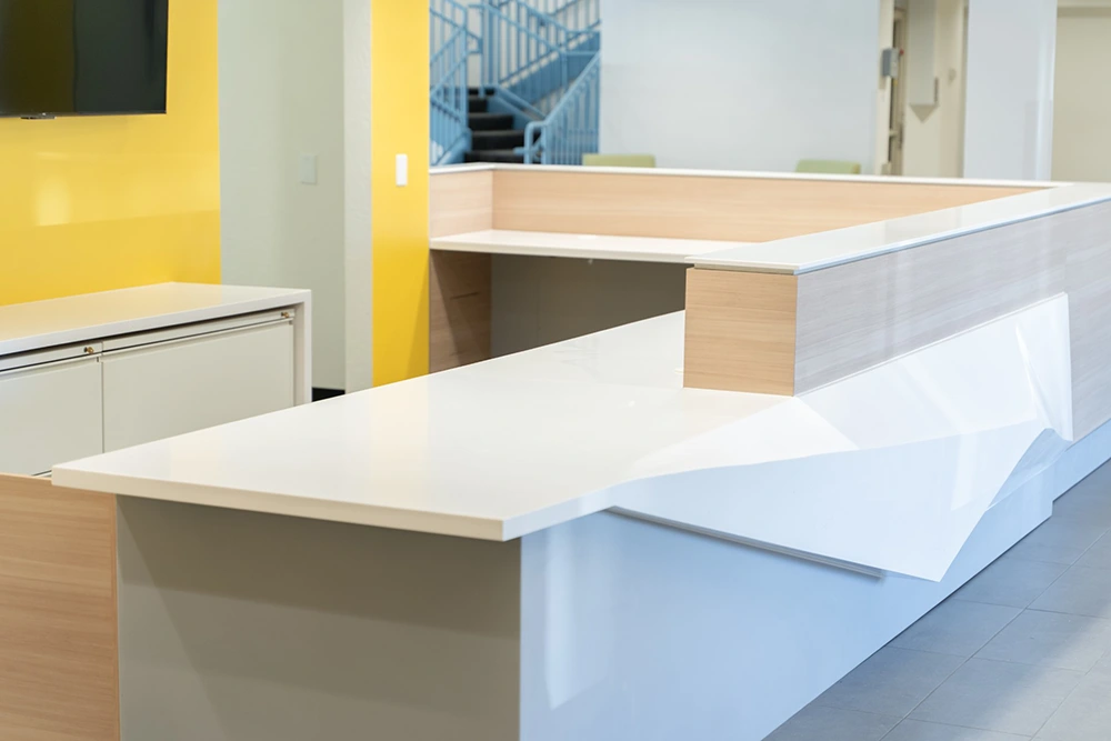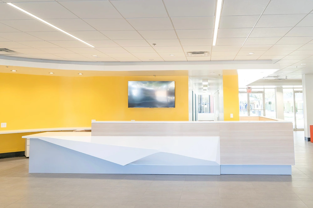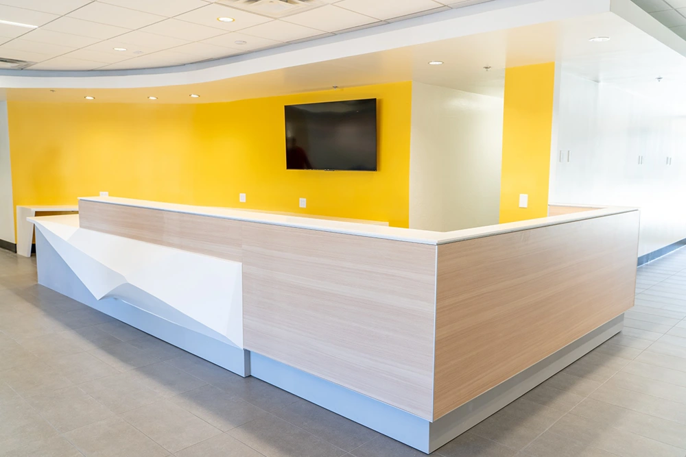 Located at 3333 E. Van Buren Street in Phoenix, UMOM New Day Centers is Arizona’s largest provider of family emergency shelter. The organization recently completed a full renovation of its main lobby, transforming the entry experience into a safe, welcoming, and functional space for families, staff, and visitors.